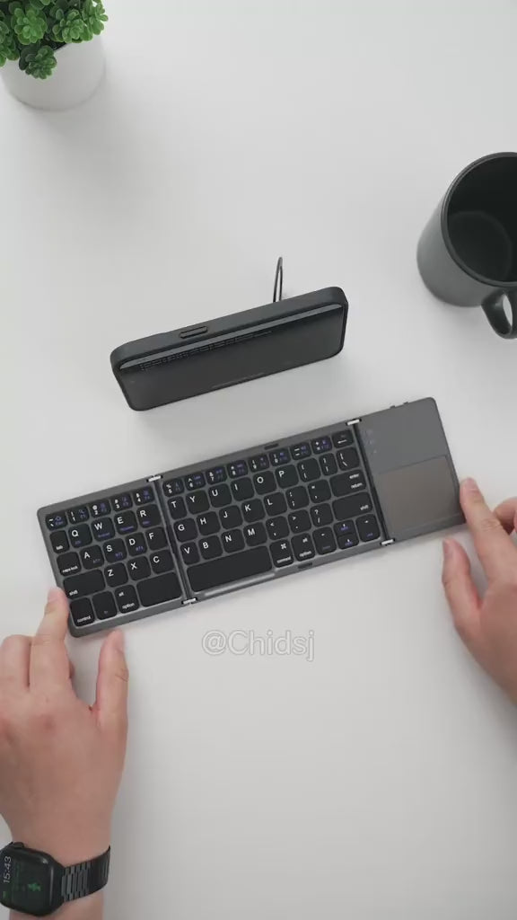 “Fold, pack, and go — this lightweight keyboard fits in your bag and connects to 3 devices, making it the ultimate travel companion.”